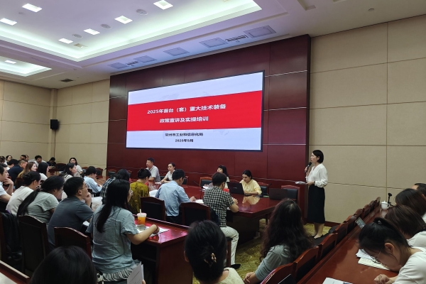 为组织实施2025年首台(套)重大技术装备保险补偿政策,9月26日,我市举办首台(套)重大技术装备政策宣讲及申报培训会,全市100多家装备企业及工信装备条线相关负责人参会。